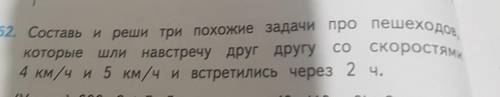 составь и решил три похожие задачи про пешеходов, которые шли навстречу друг другу со скоростями 4 км/ч и 5 км/ч и встретились через 2 ч.
